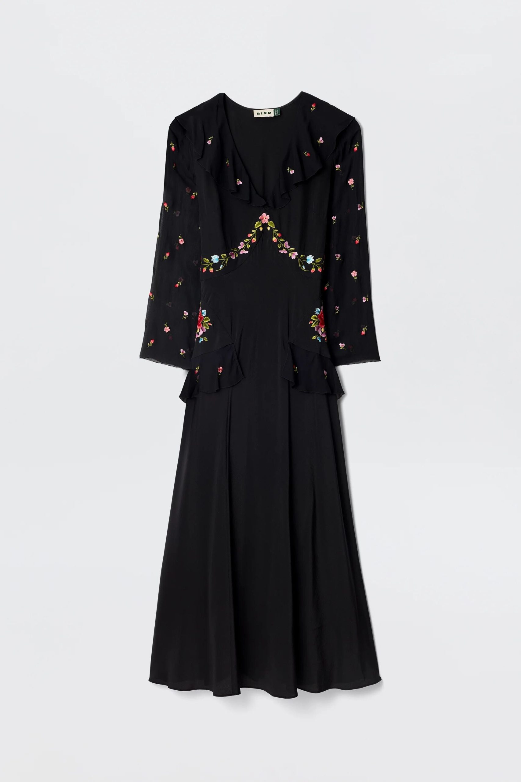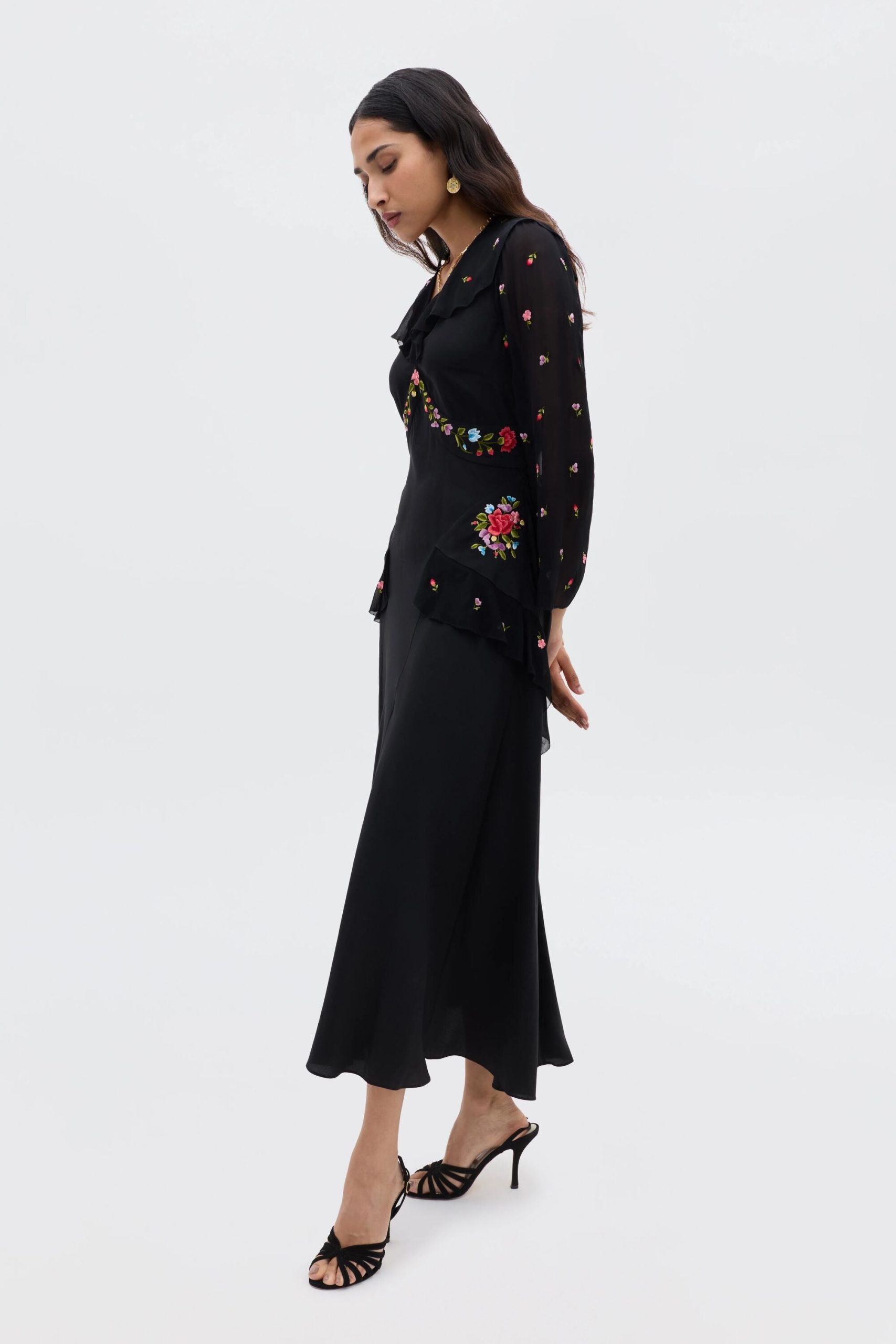 Product detailsDetailsIntroducing the Cedar Dress: a timeless new classic. An elevated take on our most-loved Evie dress, it features our signature empire waist and v-neckline. Crafted from silk and patterned in our intricate Bouquet Embroidery, it’s an heirloom-in-waiting and made for every special occasion.Fit