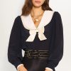Product detailsDetailsThis silk crepe de chine Eimer top is nautical inspired, with a sailor-style collar made from layers of cotton and silk-satin. The blouson sleeves are trimmed with ladylike frilled cuffs and the A-line body works tucked or untucked.Fit