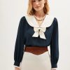 Product detailsDetailsThis silk crepe de chine Eimer top is nautical inspired, with a sailor-style collar made from layers of cotton and silk-satin. The blouson sleeves are trimmed with ladylike frilled cuffs and the A-line body works tucked or untucked.Fit