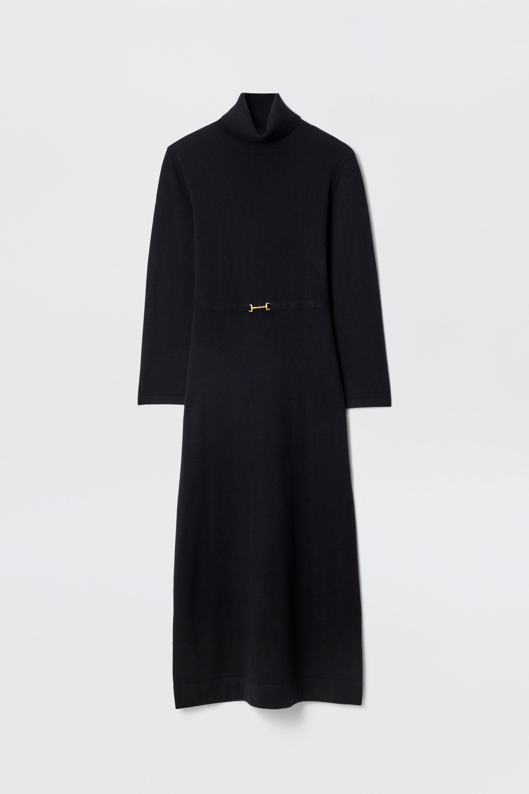 Product detailsDetailsThe ultimate knitted dress, Elliette exudes modern sophistication with a sixties spirit. The turtleneck is cosy yet elegant and the subtle volume in the sleeves adds a playful detail to this minimalist style. It comes with a built-in belt, fastened with a muted gold clasp to cinch in the waist. With a pair of Kierna pumps, it’s the perfect office-to-afterwork cocktails-staple.Fit