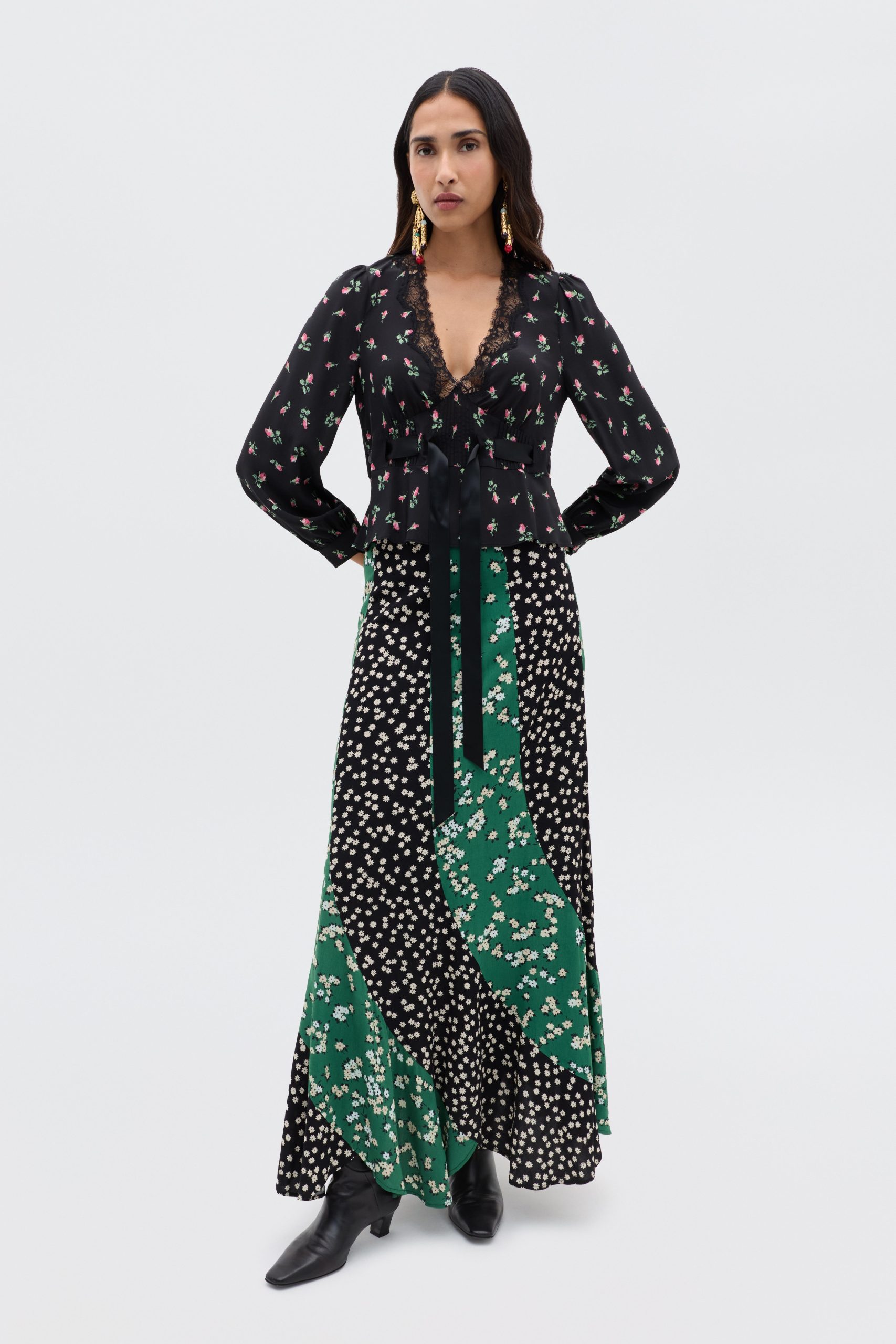 Product detailsDetailsIntroducing the Gracella Midi Skirt: a timeless staple, made with true RIXO flare. Patterned in contrasting winter floral prints it’s striking yet refined. Perfect your transitional dressing by styling it with our Rey ankle boots and a chunky knit.Fit