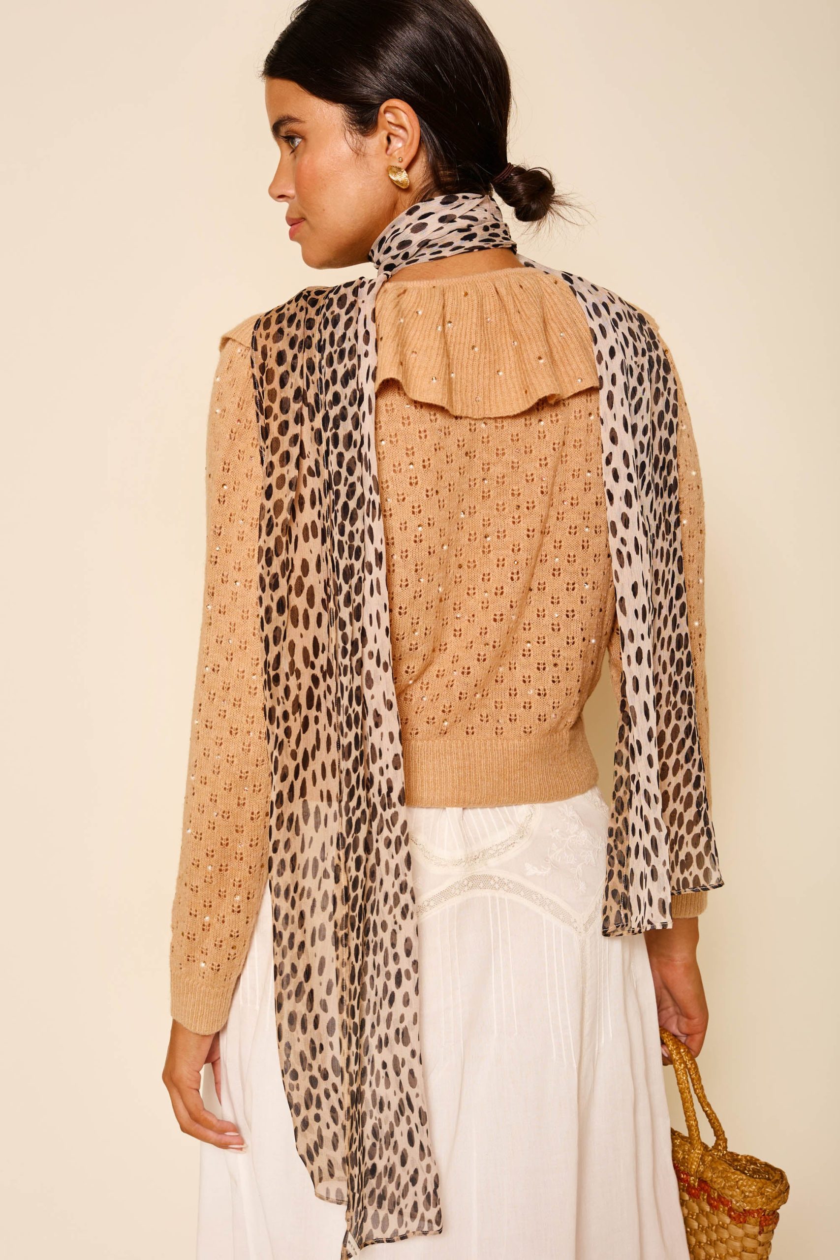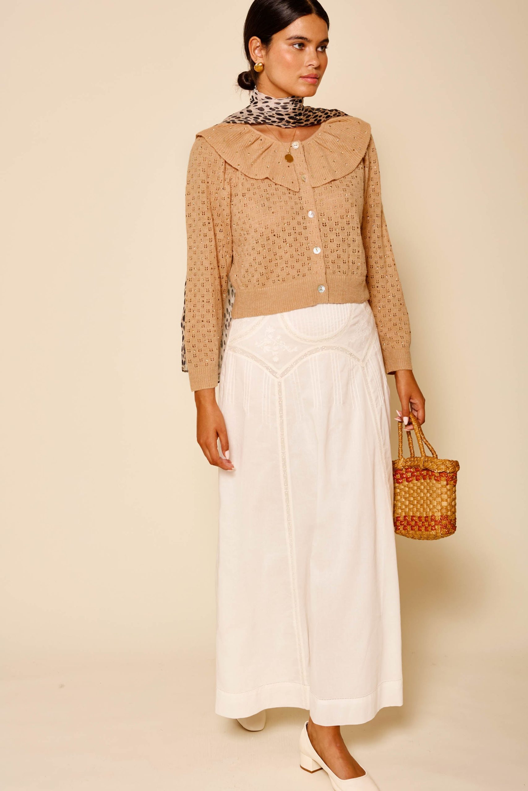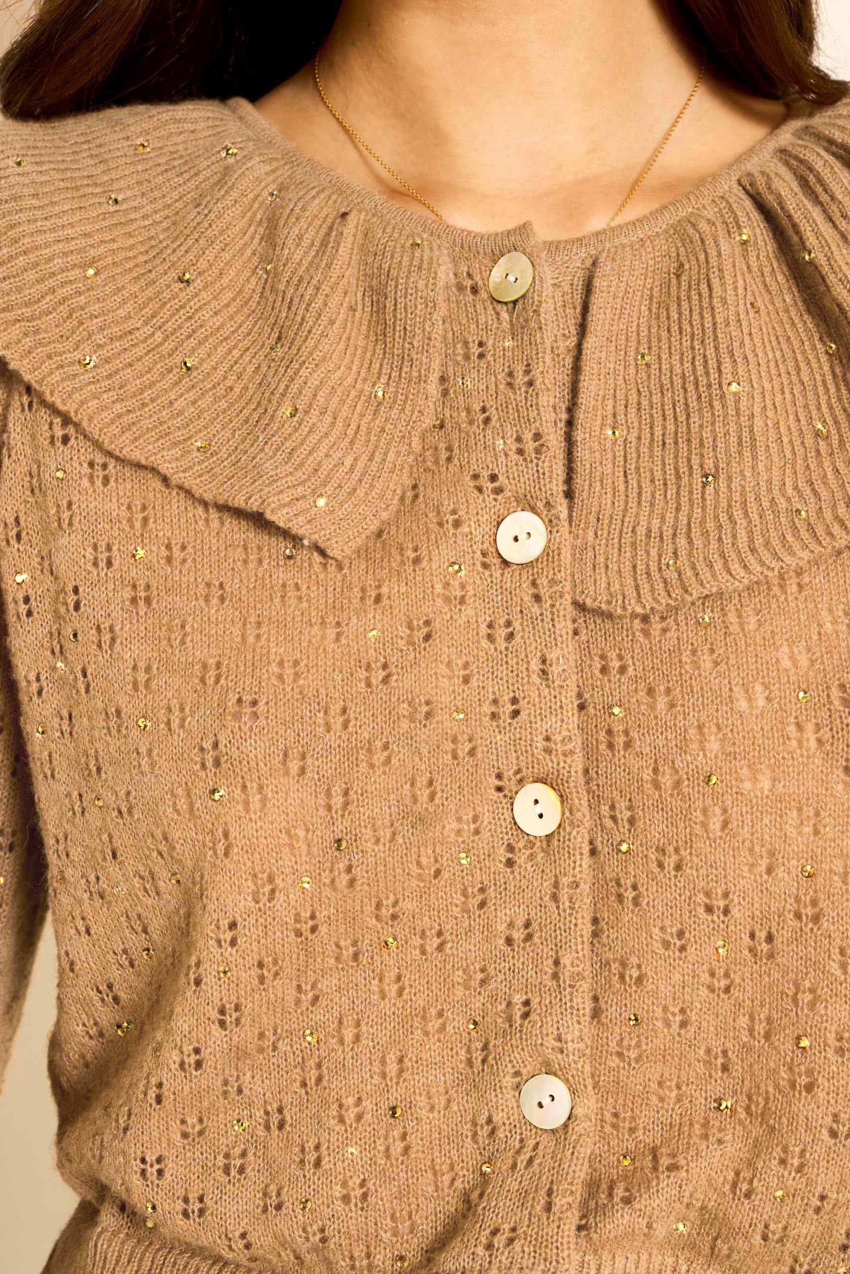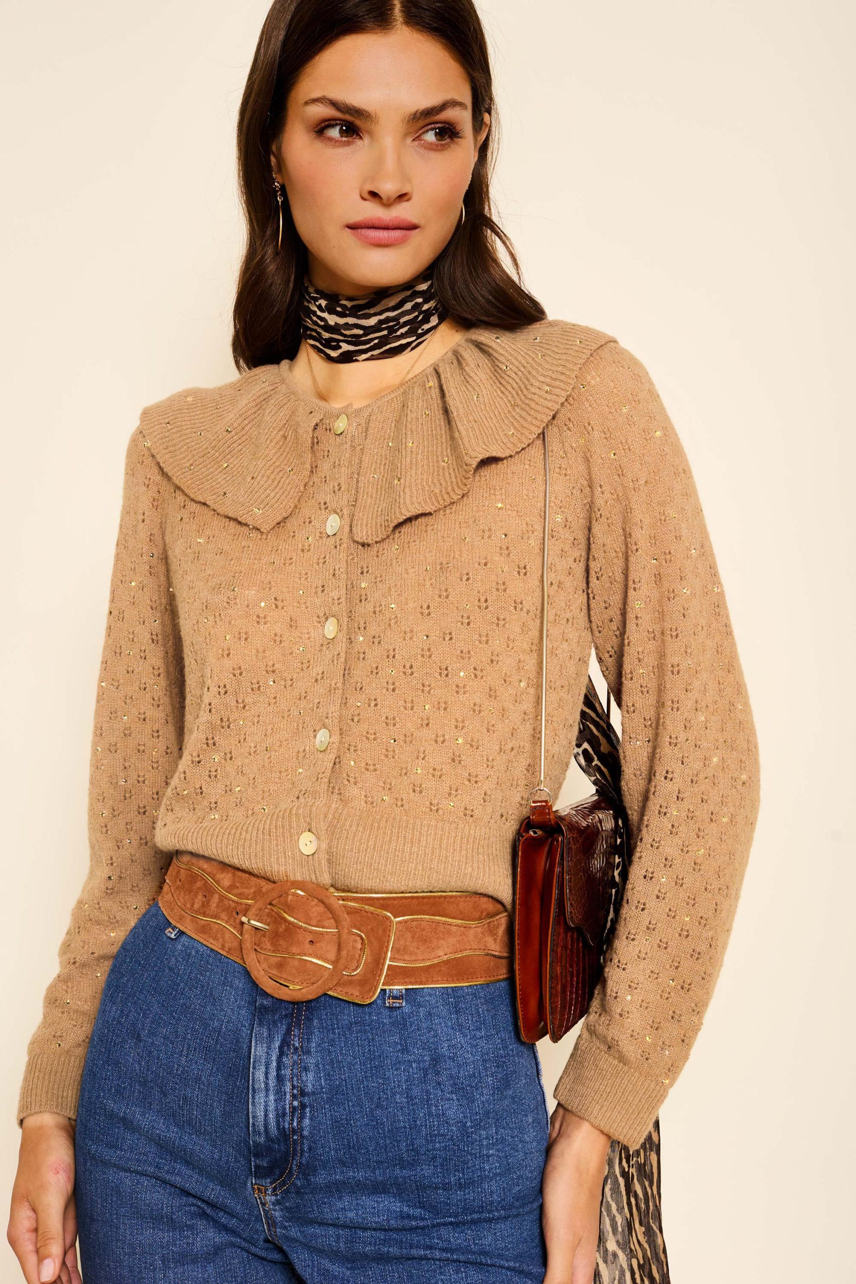 Product detailsDetailsJelena is the perfect party cardigan and one of our Creative Director’s favourites; ‘I’m obsessed with it!’ says Orlagh. Girly, but not too girly, it’s made from soft pointelle-knit with a pretty ruffled collar and subtle crystal embellishments. Wear it as top or cardigan – the boxy shape works for both.Fit