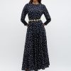 Product detailsDetailsOur Kristen Dress – classic, refined and effortlessly elegant. The cuffed sleeves give the sleeves a subtle billow for a romantic feel. Vintage-inspired, the bohemia dot print is timeless and versatile. The staple dress for busy days running errands in the city to nights celebrating life’s special moments.Fit