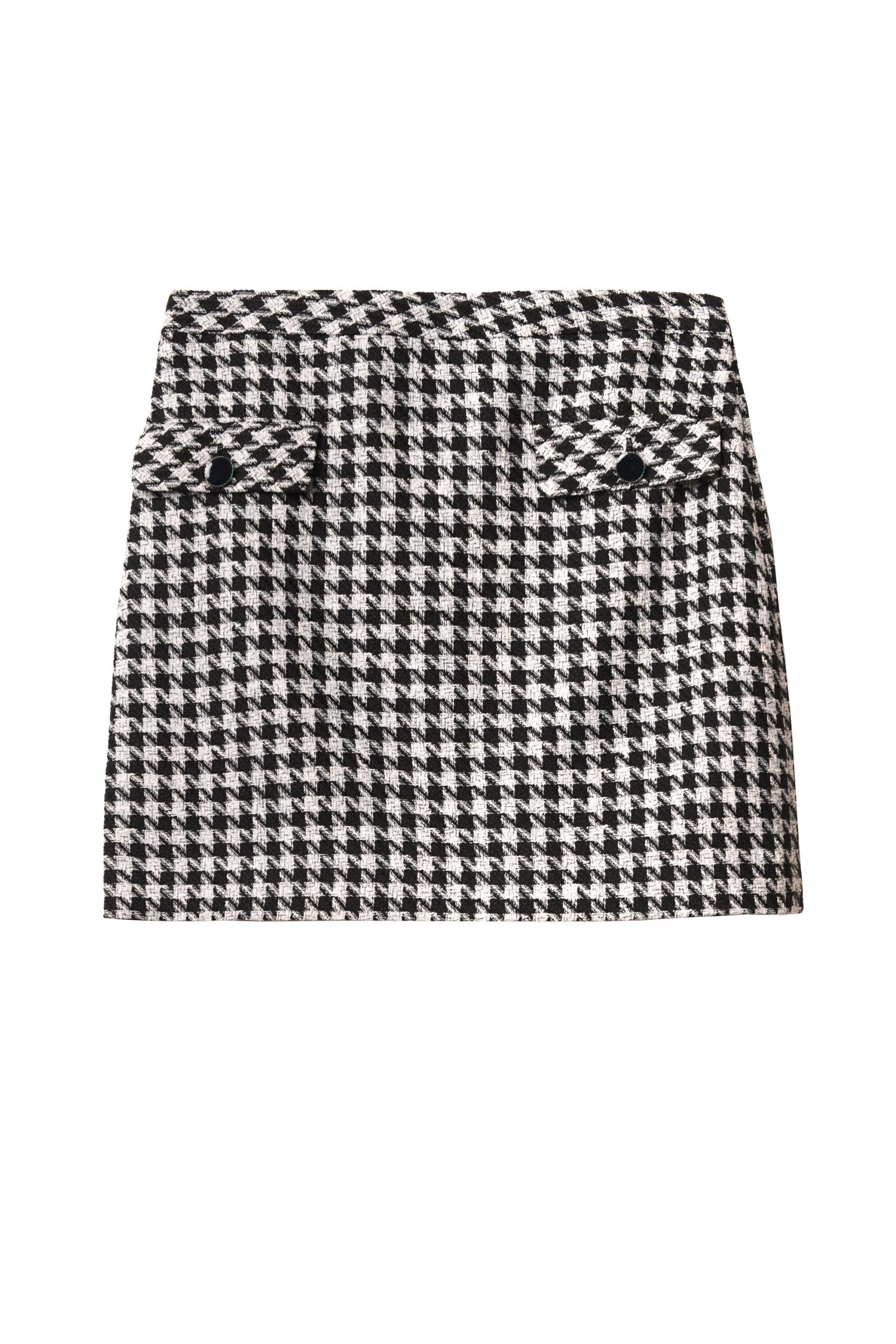 Product detailsDetailsPatterned with classic houndstooth, this Mariah mini skirt is inspired by styles from the noughties. We’ve designed a matching jacket, but we also love it worn simply with black tights and our cream Abel blouse.Fit