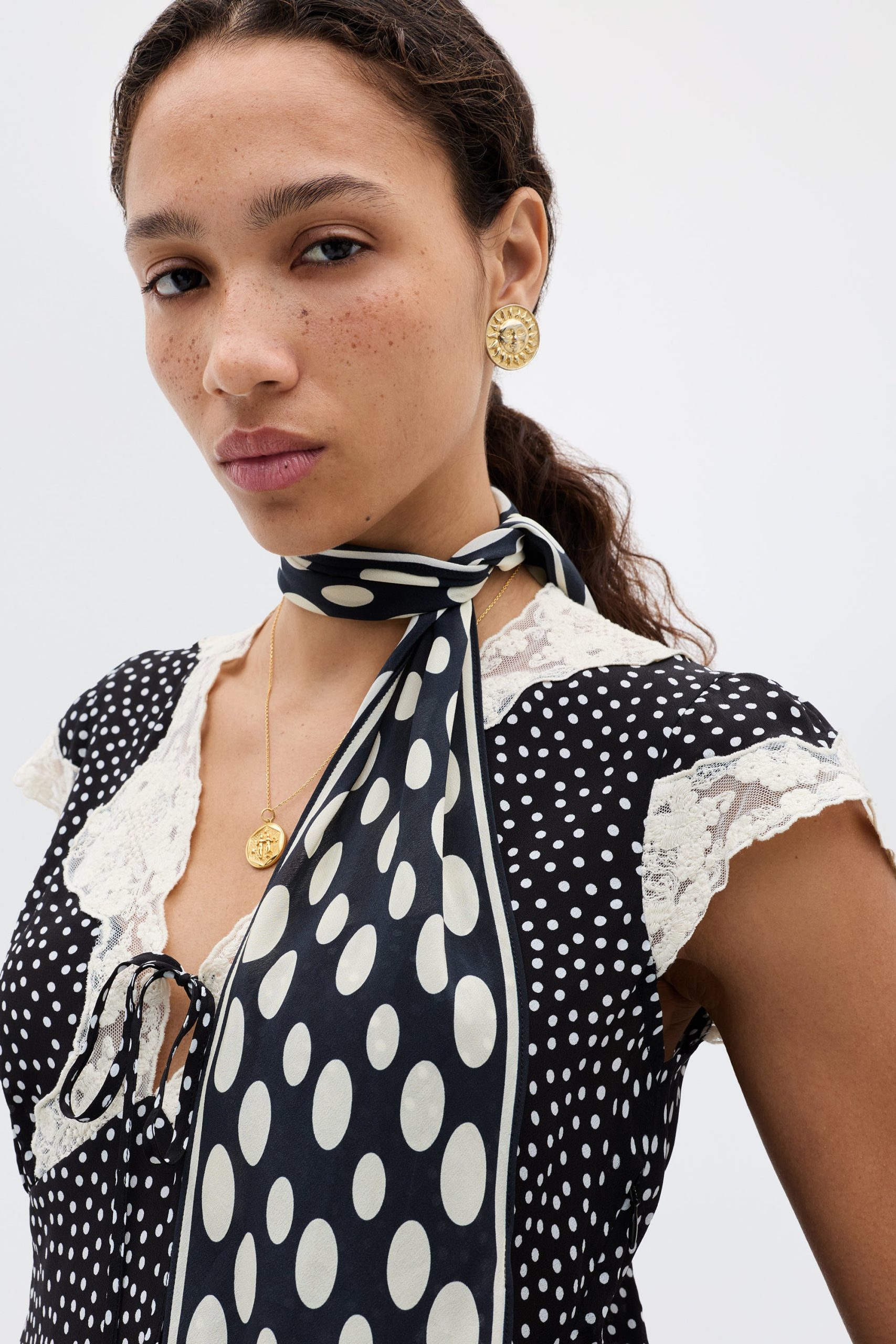 Rixo Women’s Nara Silk Scarf | Oval Spot Navy