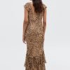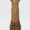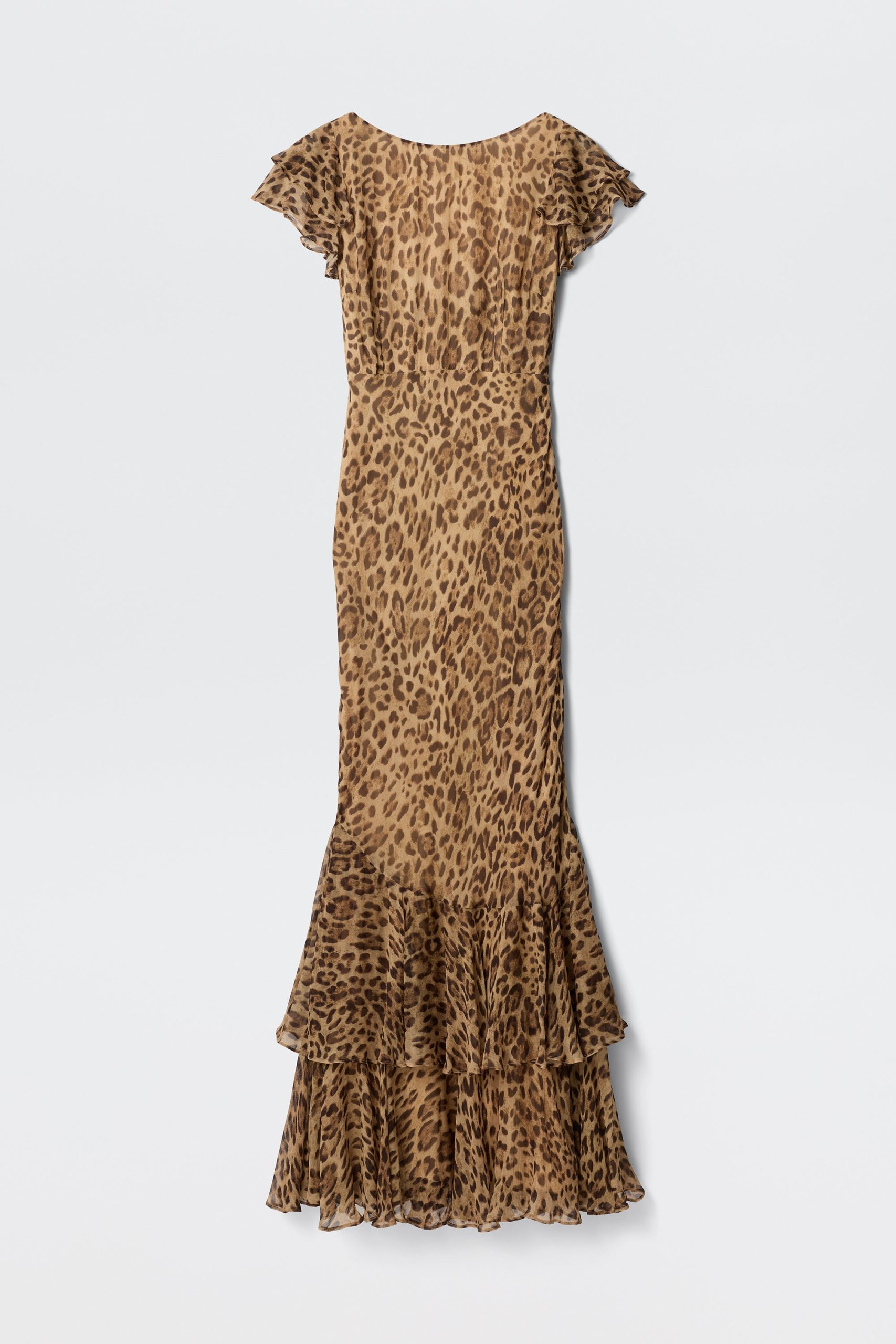 Product detailsDetailsOur most-loved Ordinia gown is a classic, made for life’s special moments. 1930s-inspired, it has with a modest low back and romantic ruffles, combining opulence and ease. Now in our new neutral, Mila Leopard print, it’s the ultimate style for black-tie weddings to theatre nights out.Fit