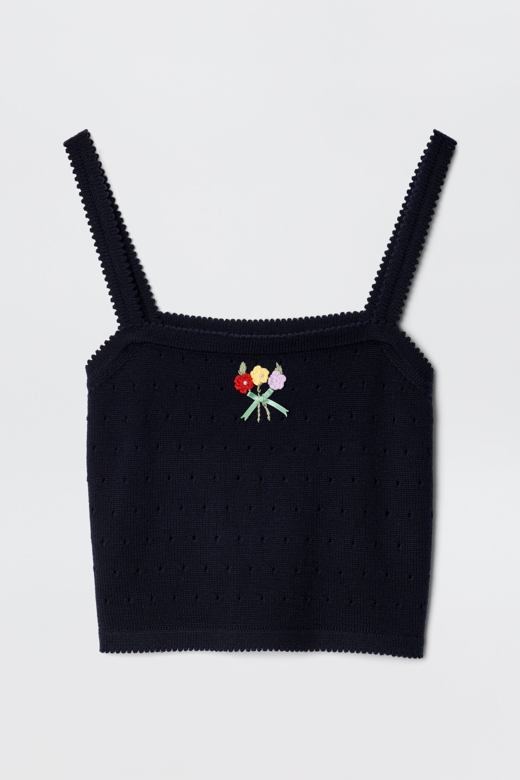 Product detailsDetailsOur Perla is half of our new knitted twinset. Crafted from a lightweight, super soft merino wool, it’s a dream piece for transitional dressing. Perfectly cropped, it’s patterned with a signature RIXO bouquet embroidery and delicate pearl beads. Style with its matching Merinda cardi or on its own for a minimalist look with nineties appeal.Fit