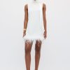 Product detailsDetailsCandice is an elegant sixties-inspired shift dress that will wow your guests. Designed with a Jackie Kennedy-esque rolled neckline and slightly A-line skirt, it’s crafted from silk-crepe with a statement feathered hemline that looks just as striking in person as it does in photographs.Fit