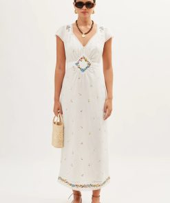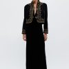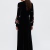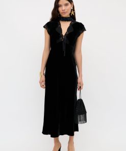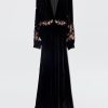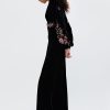 Product detailsDetailsA dress from the 1930s inspired our elegant Emory gown. A bestselling shape, it has a deep but narrow neckline and blouson sleeves. This velvet version is blended with silk and embroidered with tumbling flowers and butterflies.Fit