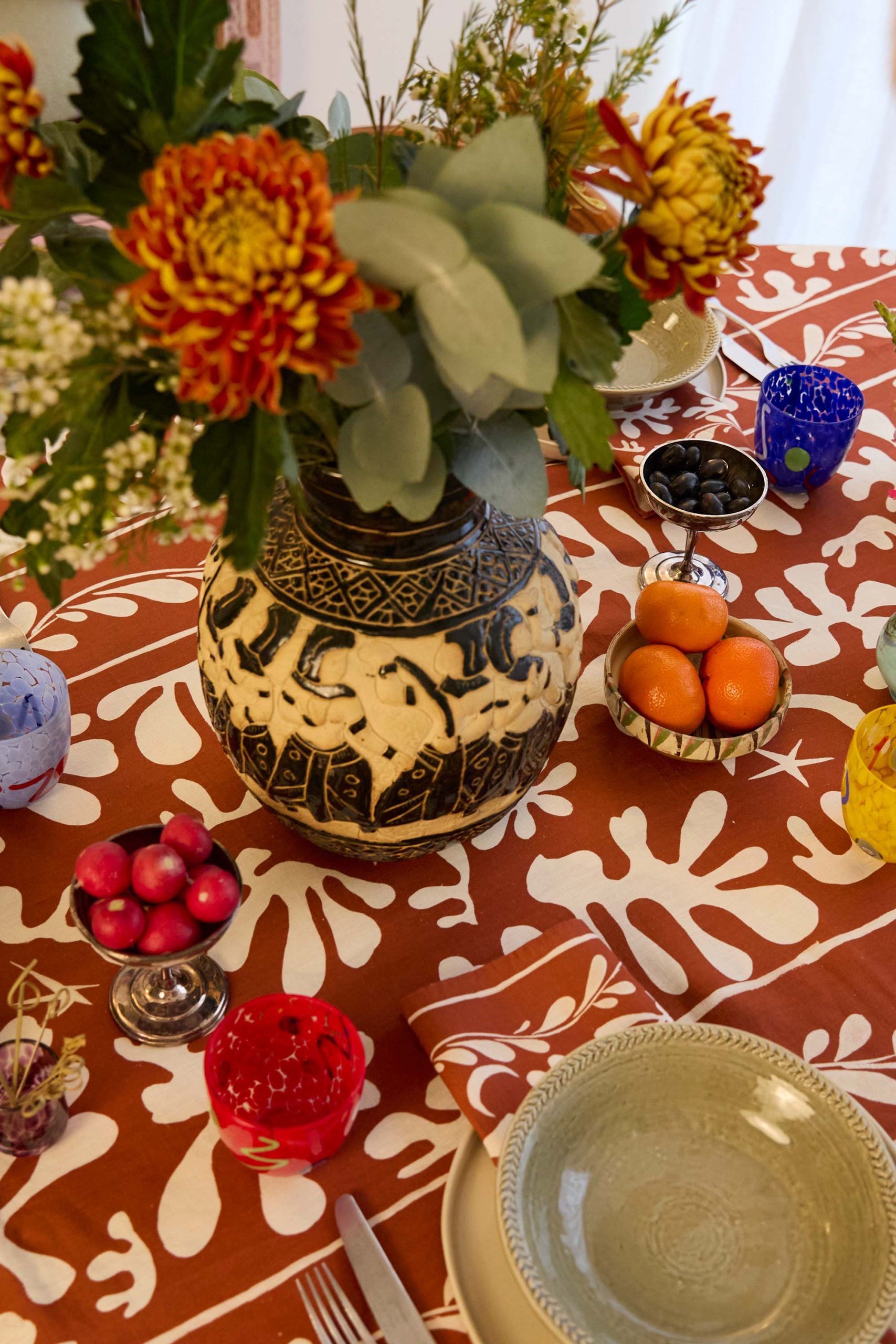 Product detailsDetailsThis Zebe tablecloth makes a striking addition to any kitchen or dining room. The scale shows off the hand-painted motif beautifully and the neutral palette will work in any interior. We’ve used a beautiful linen and cotton-blend for a natural texture. We have coordinating napkins, too.Fit