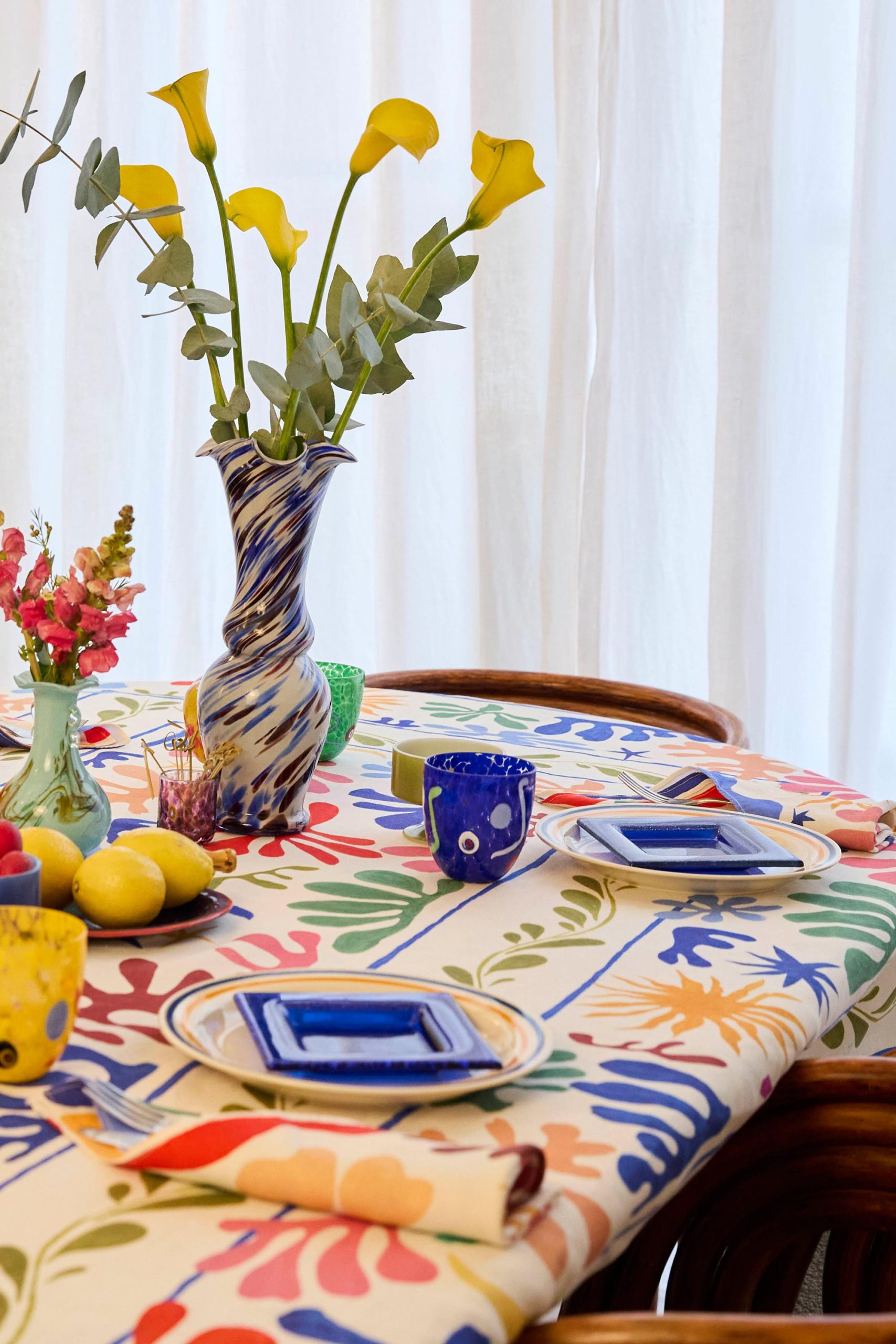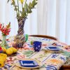 Product detailsDetailsThis Zebe tablecloth makes a striking addition to any kitchen or dining room. The scale shows off the hand-painted motif beautifully and the bright palette will lift any interior. We’ve used a beautiful linen and cotton-blend for a natural texture. We have coordinating napkins, too.Fit