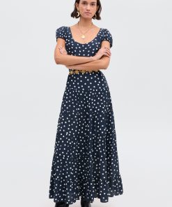 Rixo Women’s Weddings Sandrine Midi Dress | Mini Navy Polka Dot